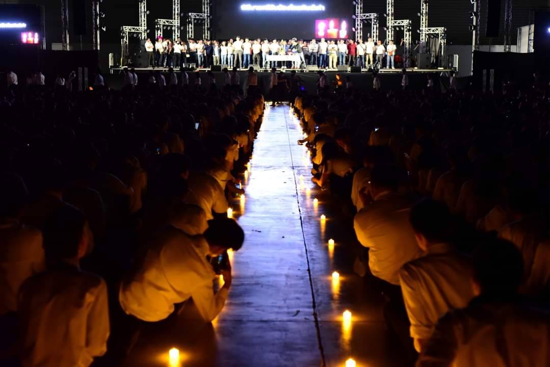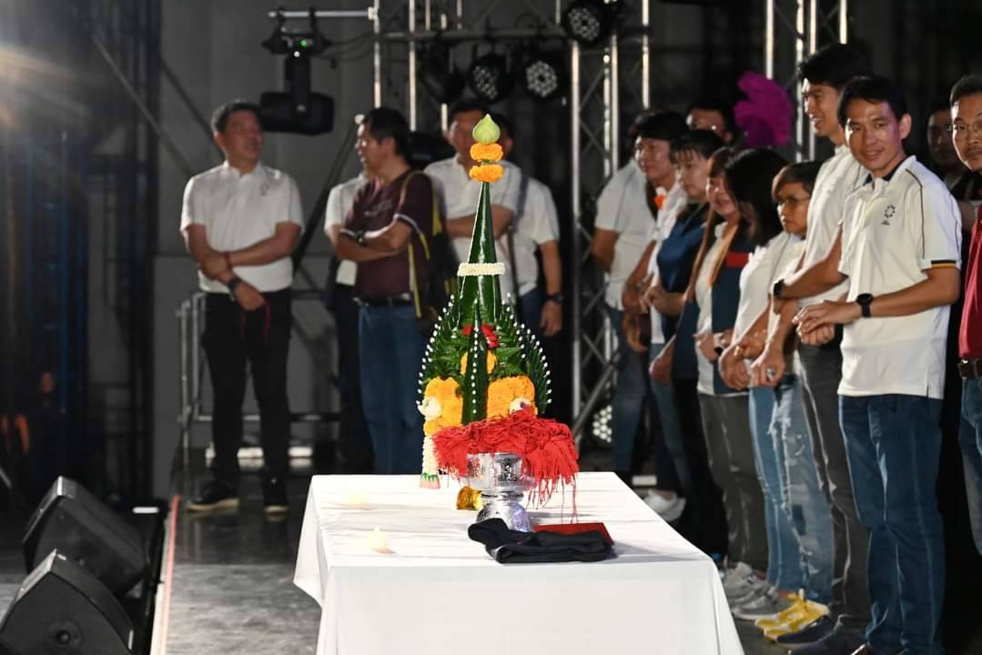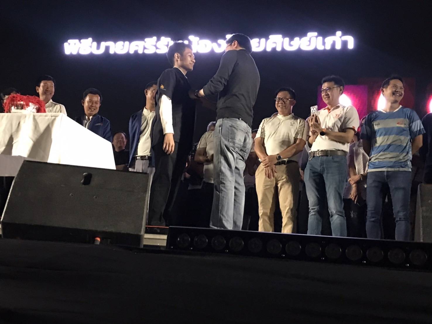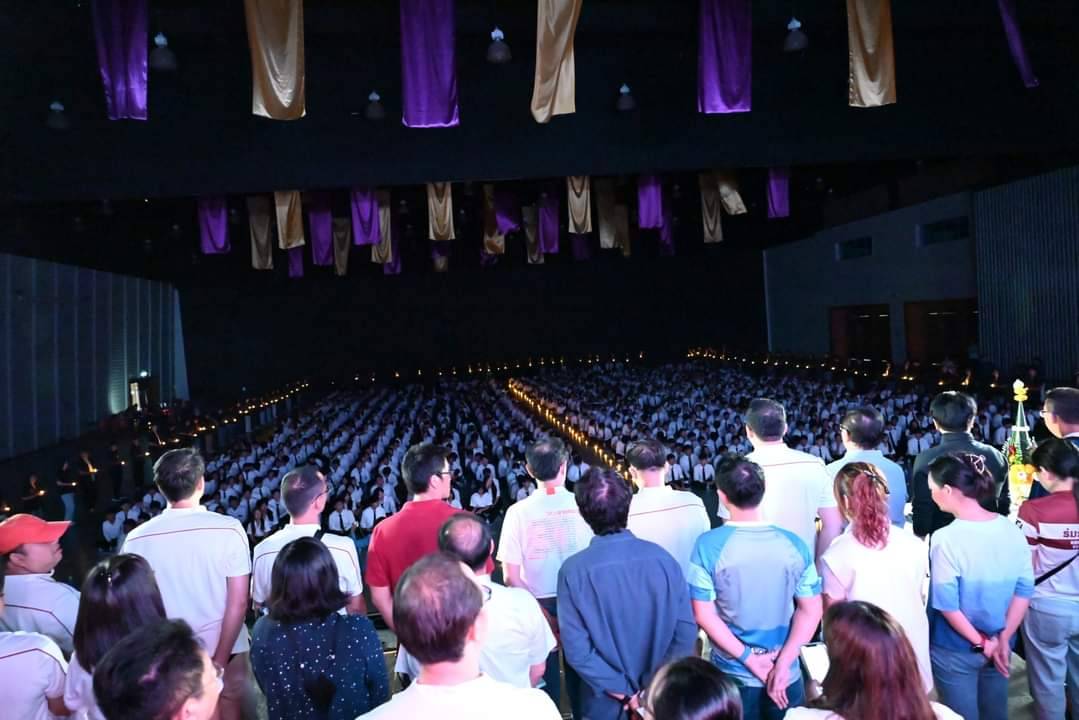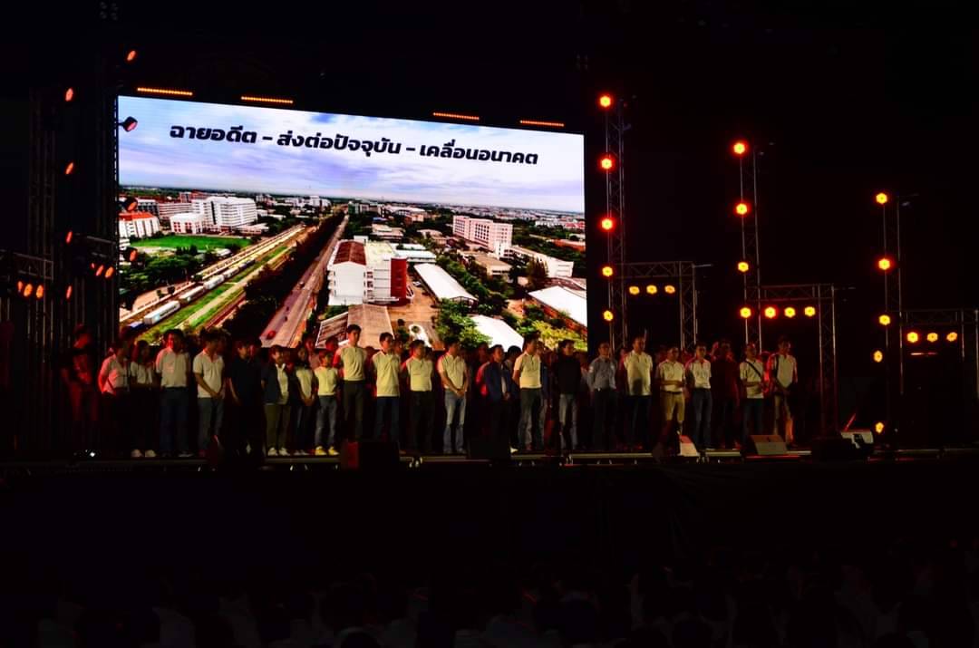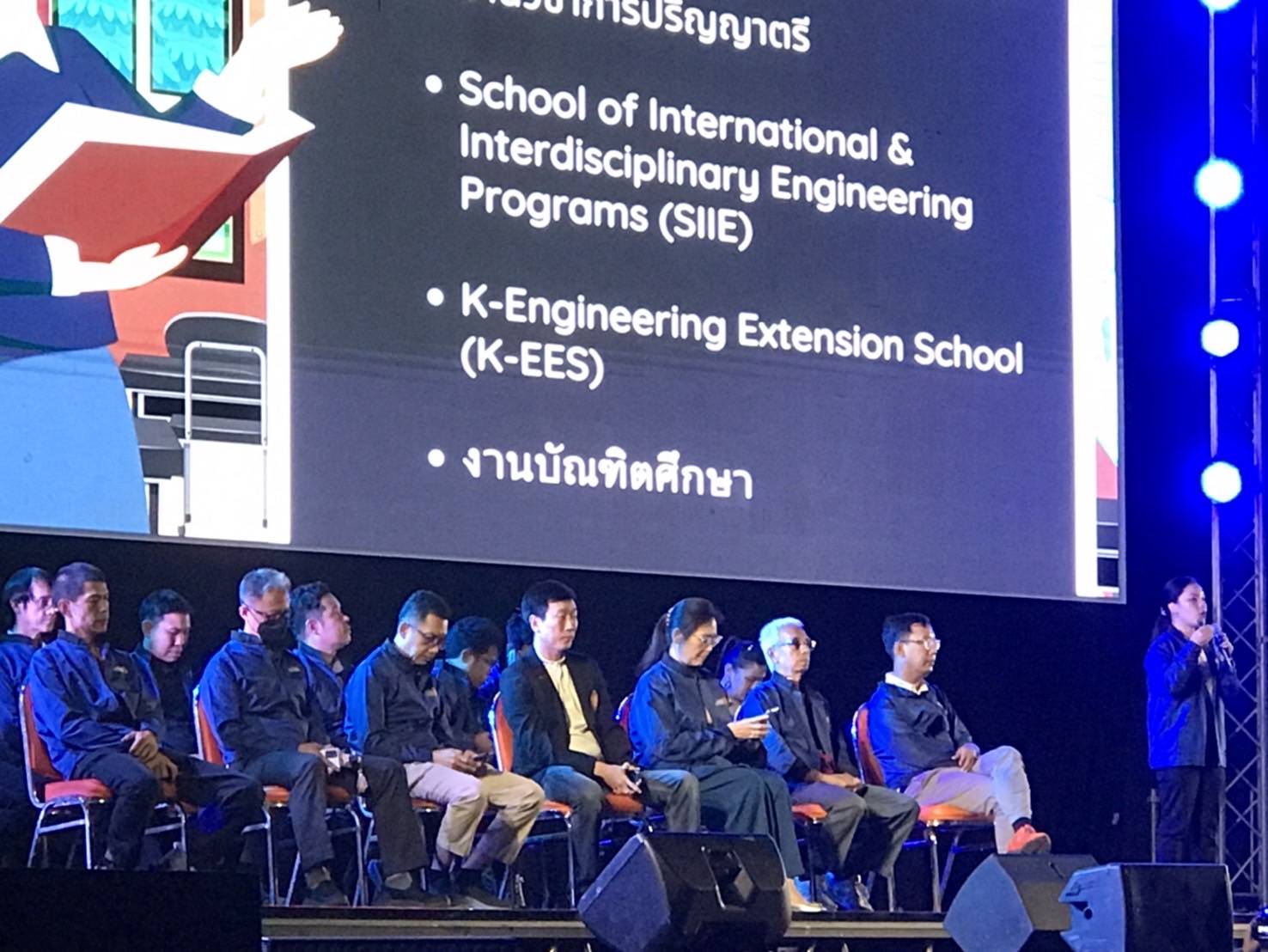 พร้อมรับขวัญน้องใหม่เข้าสู่คณะวิศวกรรมศาสตร์ และร้องเพลงคณะวิศวกรรมศาสตร์ ร่วมกันศิษย์เก่า คณาจารย์