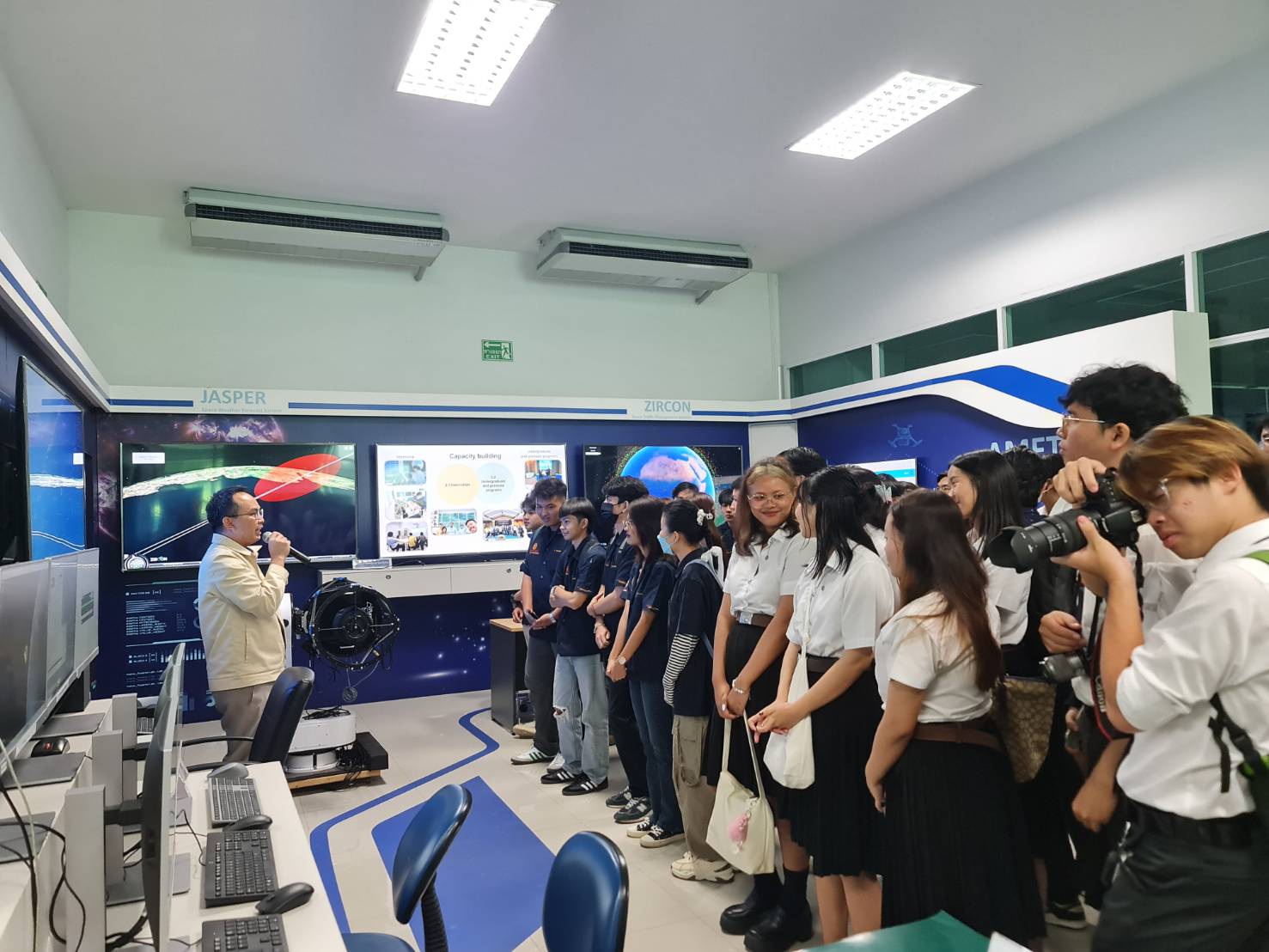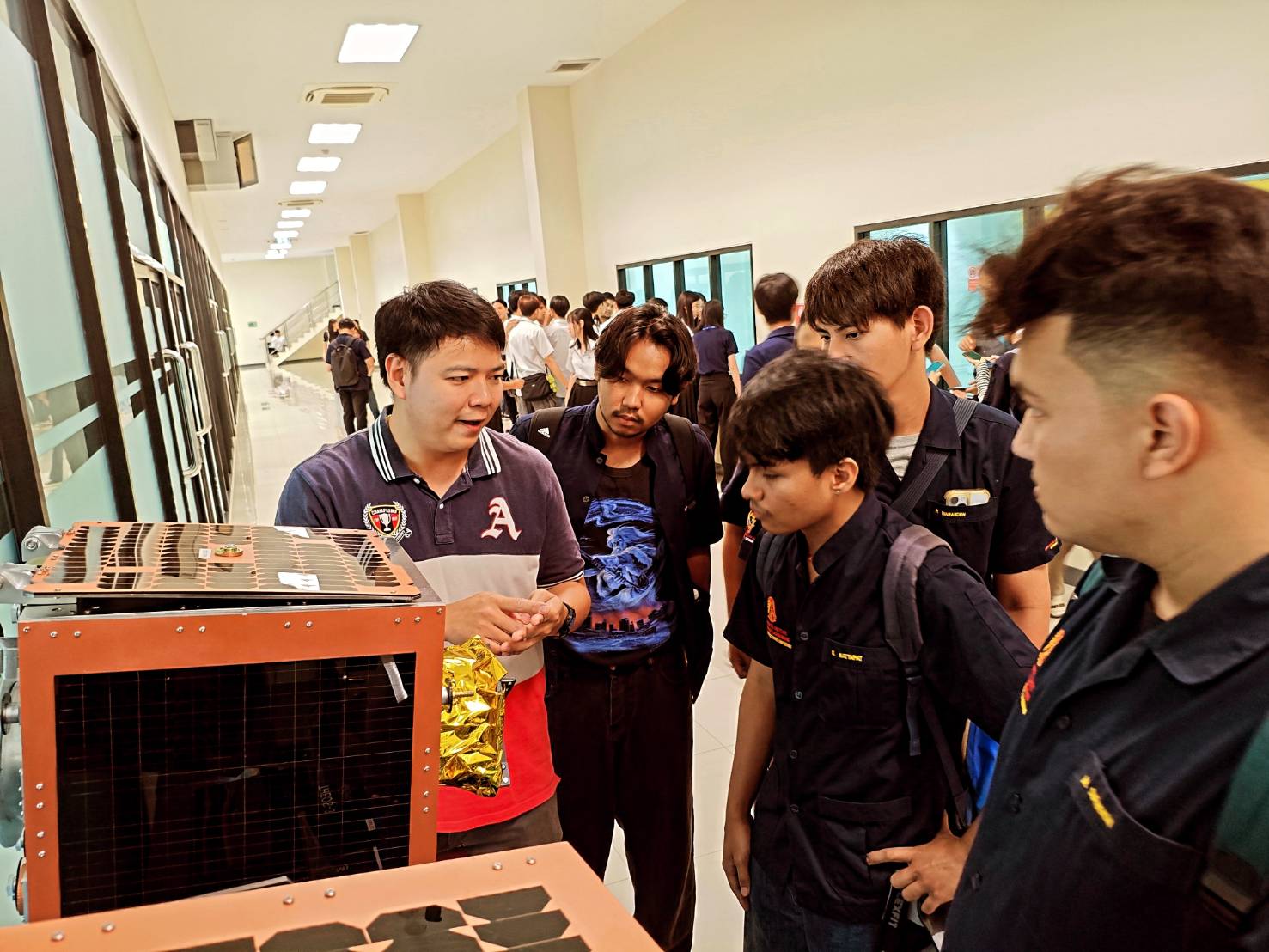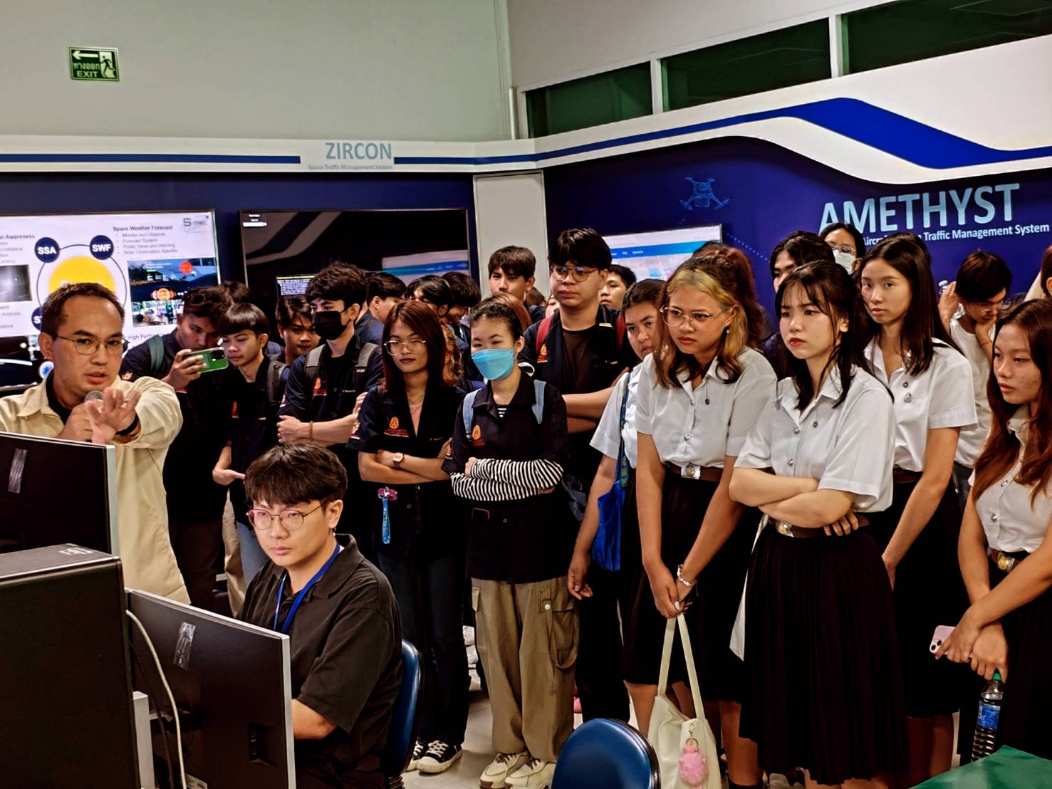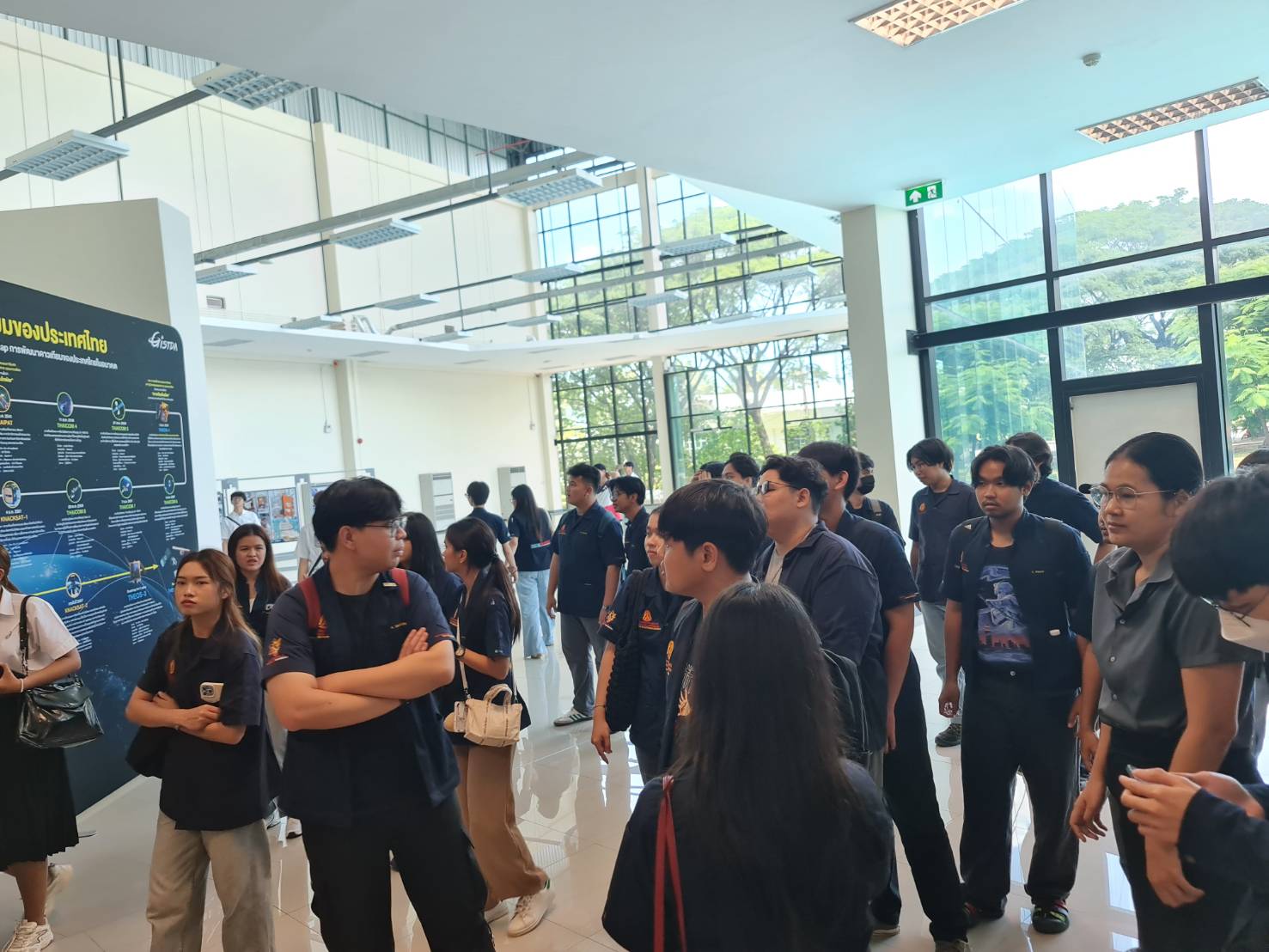 วันที่ 13 สิงหาคม 2567 ณ สำนักงานพัฒนาเทคโนโลยีอวกาศและภูมิสารสนเทศ (องค์การมหาชน) GISTDA อำเภอศรีราชา จังหวัดชลบุรี สมาคมศิษย์เก่าคณะวิศวกรรมศาสตร์ ร่วมกับ กิจการนักศึกษาคณะวิศวกรรมศาสตร์ สถาบันเทคโนโลยีพระจอมเกล้าเจ้าคุณทหารลาดกระบัง จัดกิจกรรมเสริมสร้างความรู้และประสบการณ์ใหม่ ๆ นอกห้องเรียนให้กับนักศึกษาคณะวิศวกรรมศาสตร์ ด้วยการพานักศึกษาไปศึกษากดูงานนอกสถานที่ โดยครั้งนี้ มีนักศึกษาคณะวิศวกรรมศาสตร์ จำนวน 70 ท่าน เข้าร่วมศึกษาดูงานจากภาควิชาวิศวกรรมไฟฟ้าสื่อสารและอิเล็กทรอนิกส์ (ต่อเนื่อง) และวิศวกรรมอวกาศและภูมิสารสนเทศ