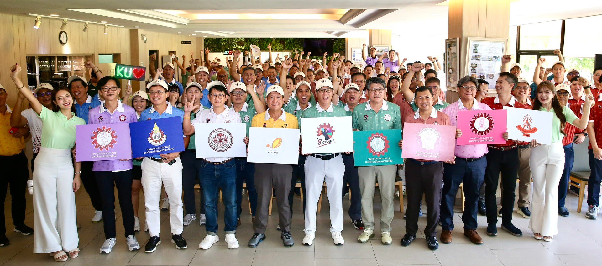 คุณพงศกร ตันยะกุล นายกสมาคมศิษย์เก่าคณะวิศวกรรมศาสตร์ สจล. พร้อมคณะกรรมการสมาคมฯ และทีมนักกีฬากอล์ฟร่วมงานแถลงข่าว “กอล์ฟ 8 เกียร์” ครั้งที่ 8 ณ สนามบางกอก กอล์ฟ คลับ