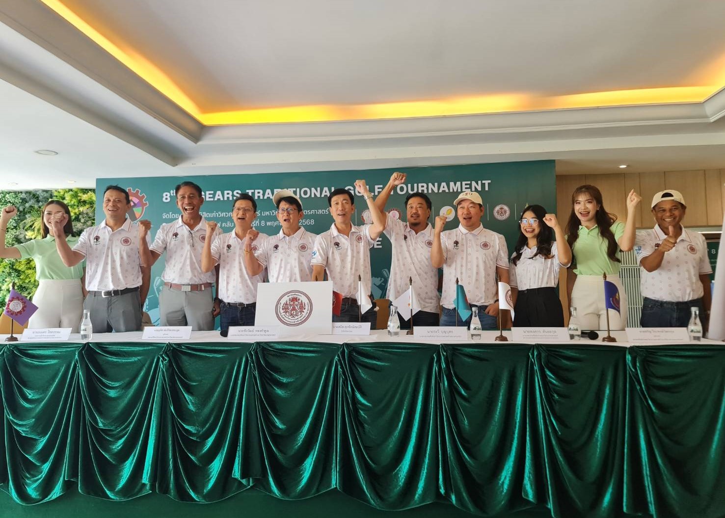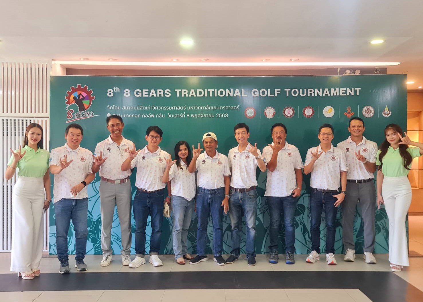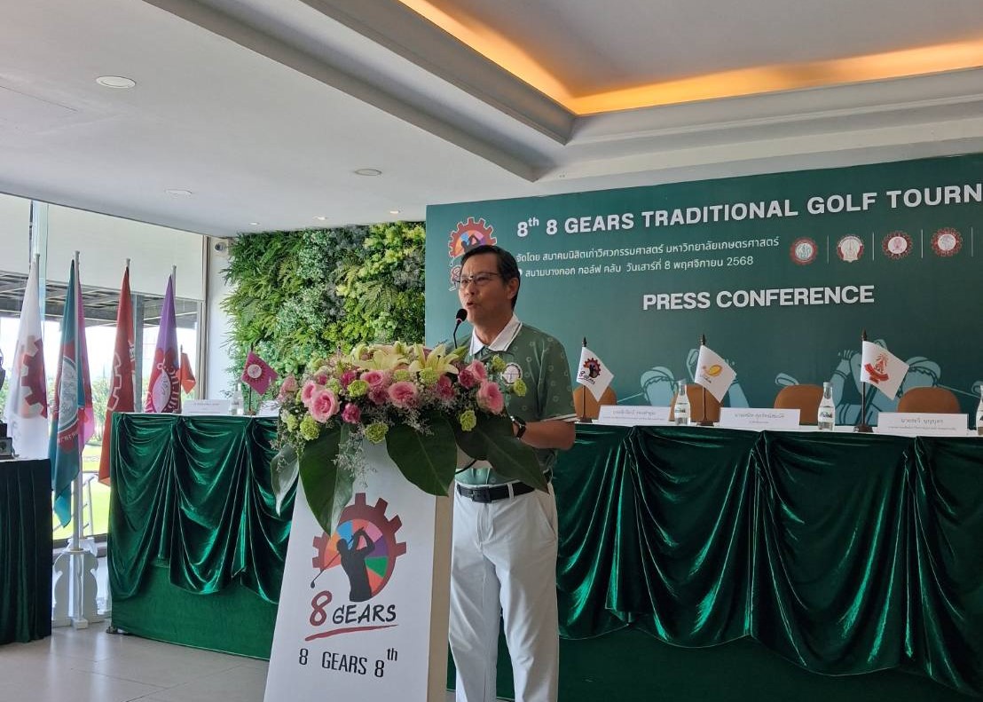 โดย คุณชัยวัฒน์ ทองคำคูณ นายกสมาคมนิสิตเก่าคณะวิศวกรรมศาสตร์ มหาวิทยาลัยเกษตรศาสตร์ ในฐานะประธานจัดการแข่งขัน เป็นประธานในการแถลงข่าวการแข่งขัน “กอล์ฟ 8 เกียร์” ครั้งที่ 8 พร้อมตัวแทนของ 8 สถาบันเข้าร่วม