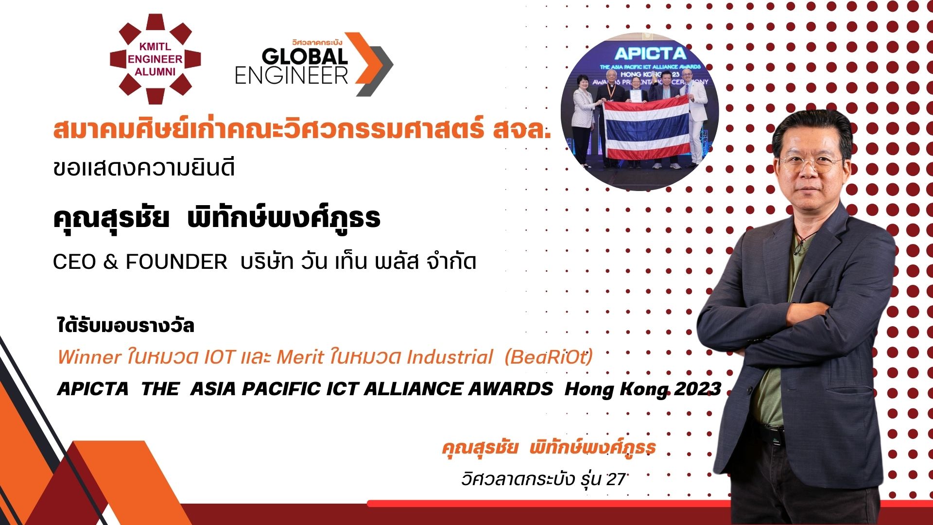 คุณสุรชัย พิทักษ์พงศ์ภูธร| Winner ในหมวด IOT และ Merit ในหมวด Industrial (BeaRiOt) APICTA THA ASIA PACIFIC ICT ALLIANCE AWARDS Hong Kong 2023