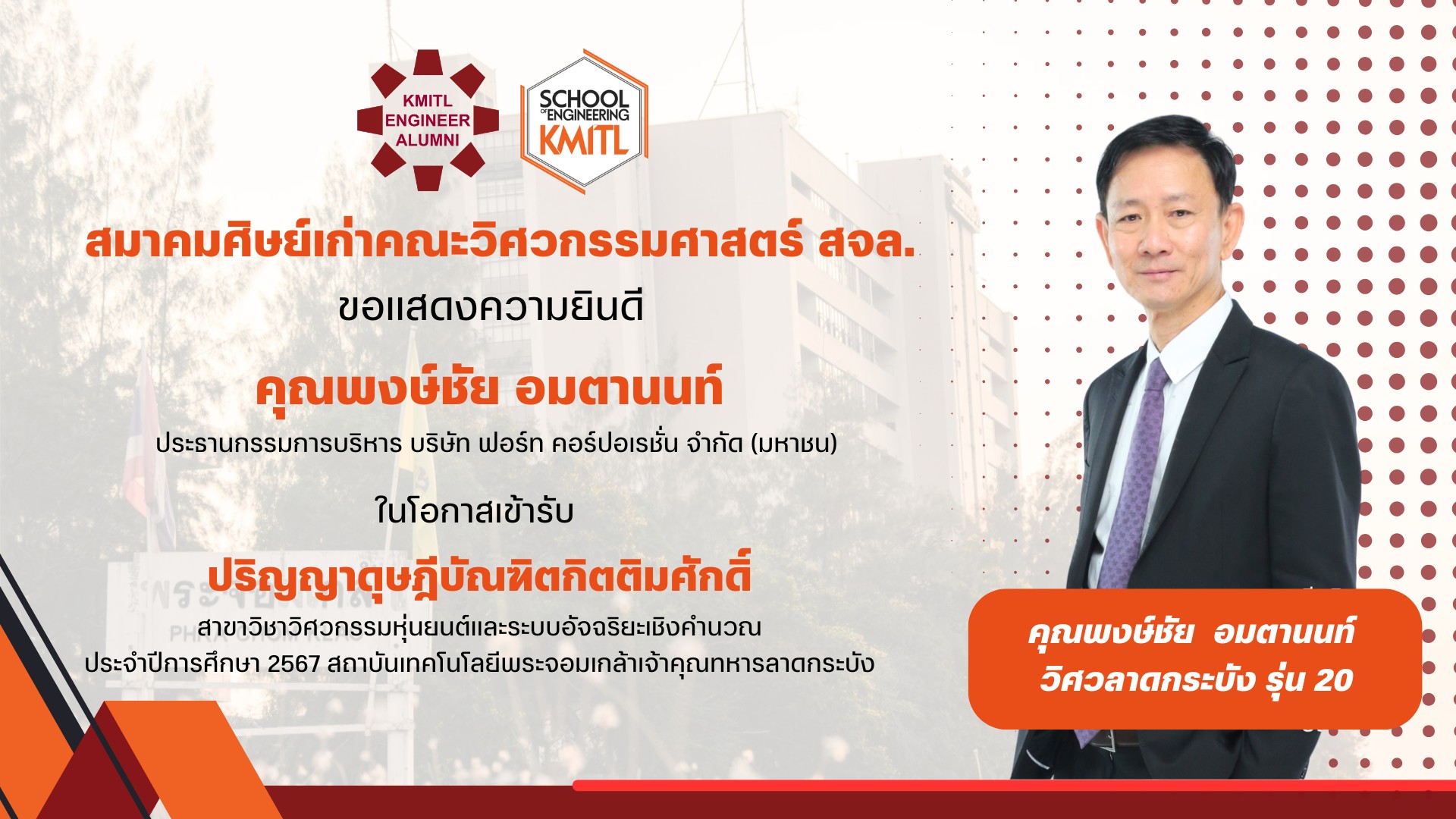 คุณพงษ์ชัย อมตานนท์ | ในโอกาสเข้ารับ ปริญญาดุษฎีบัณฑิตกิตติมศักดิ์ สาขาวิชาวิศวกรรมหุ่นยนต์และระบบอัจฉริยะเชิงคำนวณ