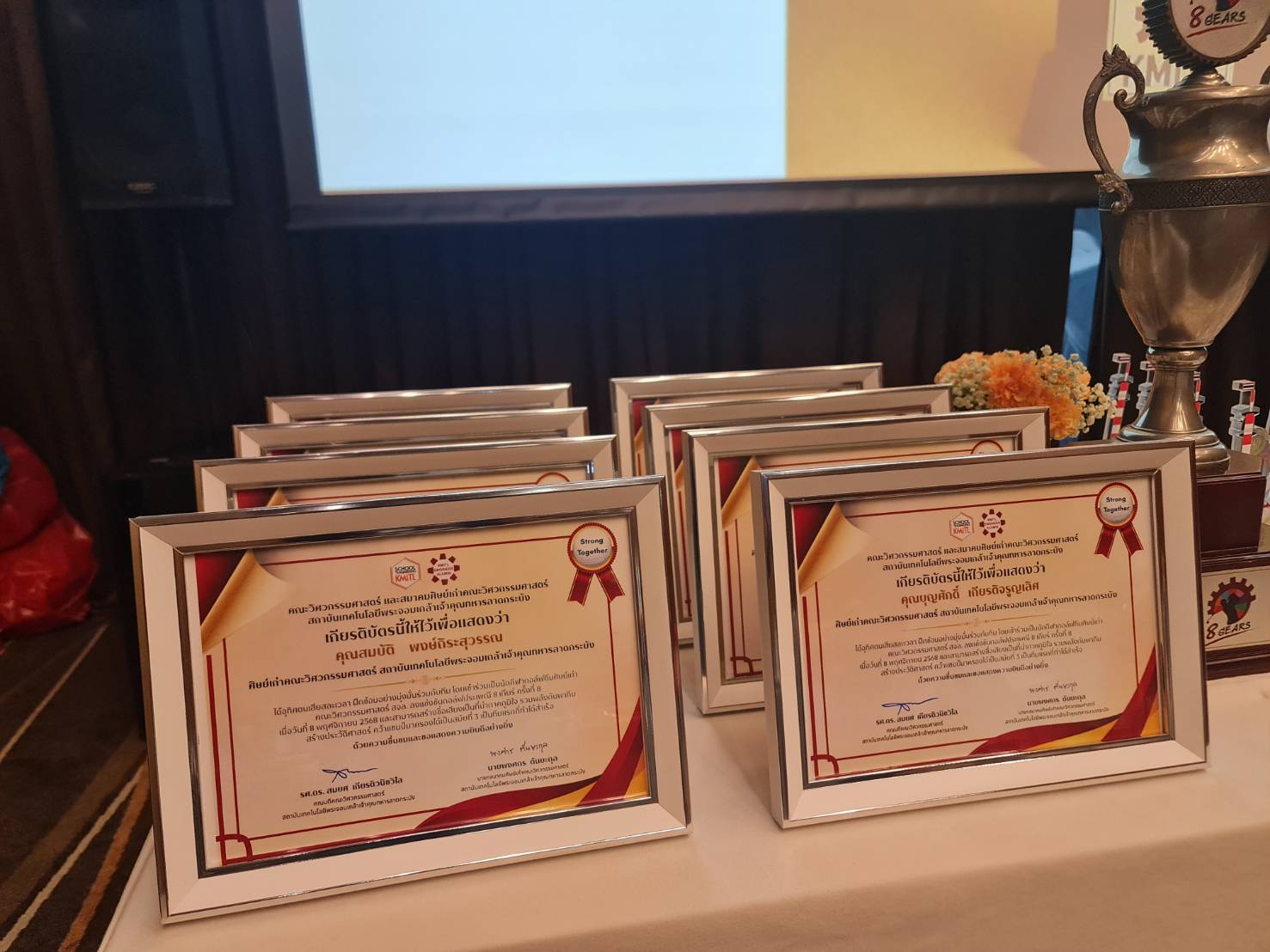 เมื่อวันพฤหัสบดีที่ 11 ธันวาคม 2568 ณ สนามกอล์ฟ นิกันติ กอล์ฟ คลับ.จังหวัดนครปฐม สมาคมศิษย์เก่าคณะวิศวกรรมศาสตร์ สจล. โดย คุณพงศกร ตันยะกุล นายกสมาคมศิษย์เก่า ฯ คณะวิศวกรรมศาสตร์ สจล. ร่วมแสดงความยินดี พร้อมมอบโล่เกียรติยศ และประกาศนียบัตร แก่นักกีฬา ทีมงาน และผู้สนับสนุน การแข่งขันกอล์ฟประเพณี 8 เกียร์